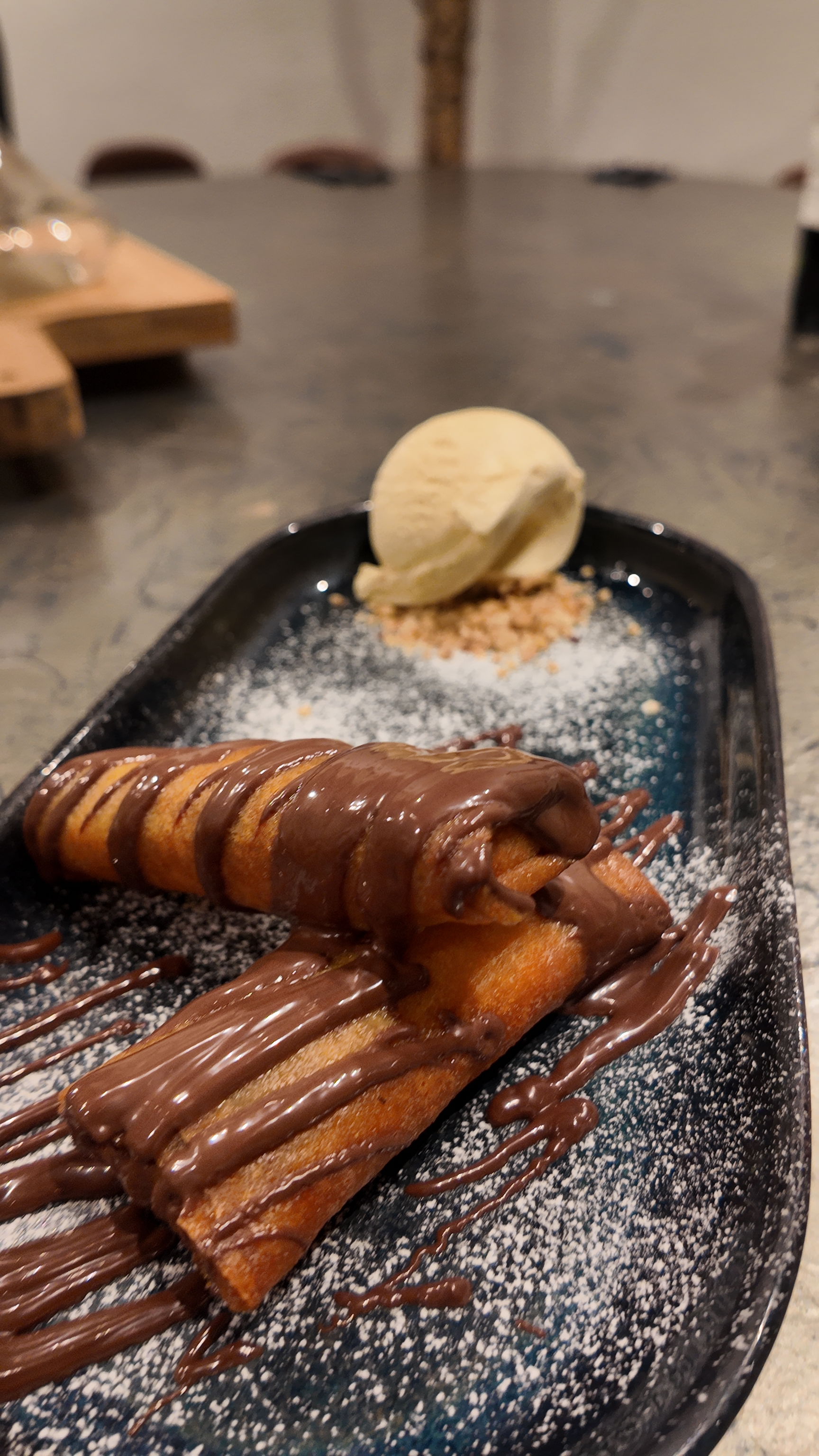 Les nems de banane, fondue de chocolat